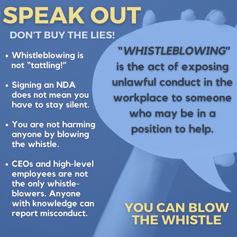 In the 2023-2024 academic year, National Whistleblower Center (“NWC”) partnered with Northeastern University School of Law as part of the institution’s Legal Skills in Social Context (“LSSC”) program. As a partner organization to this program, NWC formulated a project with Northeastern University Visiting Professor, Sarah Lee Day. The project, a social media carousel about non-disclosure agreements, was developed by a group of first year law students who engaged in extensive research and conducted expert interviews to then consolidate their findings in easy to digest and approachable graphics for NWC’s Instagram account.