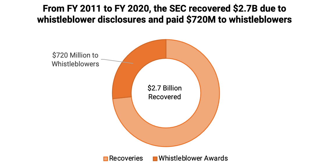 The data continues to prove the efficacy of the SEC and CFTC whistleblower programs, particularly the SEC program. Since the Dodd-Frank Act was passed in 2010, the SEC and CFTC have recovered over $3.7 billion, while more than $840 million has been awarded to whistleblowers.