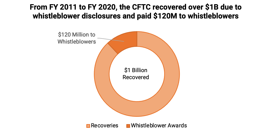Whistleblower tips and reward programs are an incredibly powerful incentive for whistleblowers to speak up, and an enormous amount of funds are brought into U.S. government coffers as a direct result of whistleblowers’ bravery. The SEC and CFTC’s Office of the Whistleblower Annual Reports to Congress continue to demonstrate the success of these whistleblower provisions. You can find them here and here.